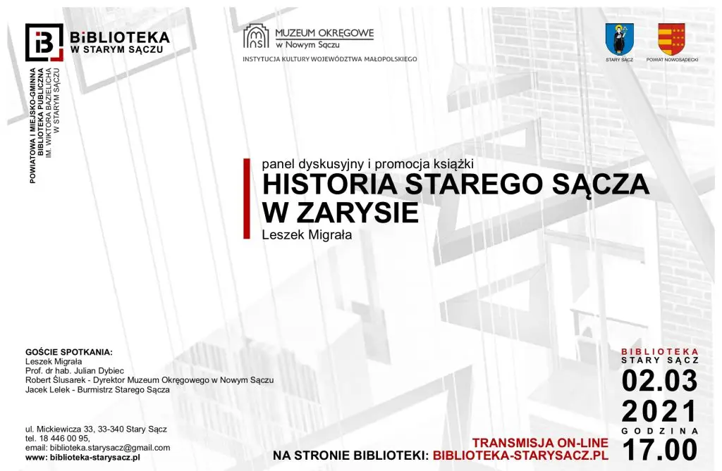 Powiatowa i Miejsko-Gminna Biblioteka Publiczna im. Wiktora Bazielicha w Starym Sączu oraz Muzeum Okręgowe w Nowym Sączu zapraszają na panel dyskusyjny oraz promocję książki autorstwa Leszka Migrały „Historia Starego Sącza w zarysie”.