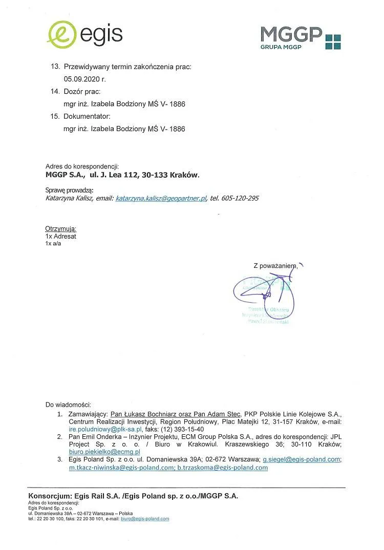 Przewidywany termin zakończenia prac: 5 września 2020 r.
