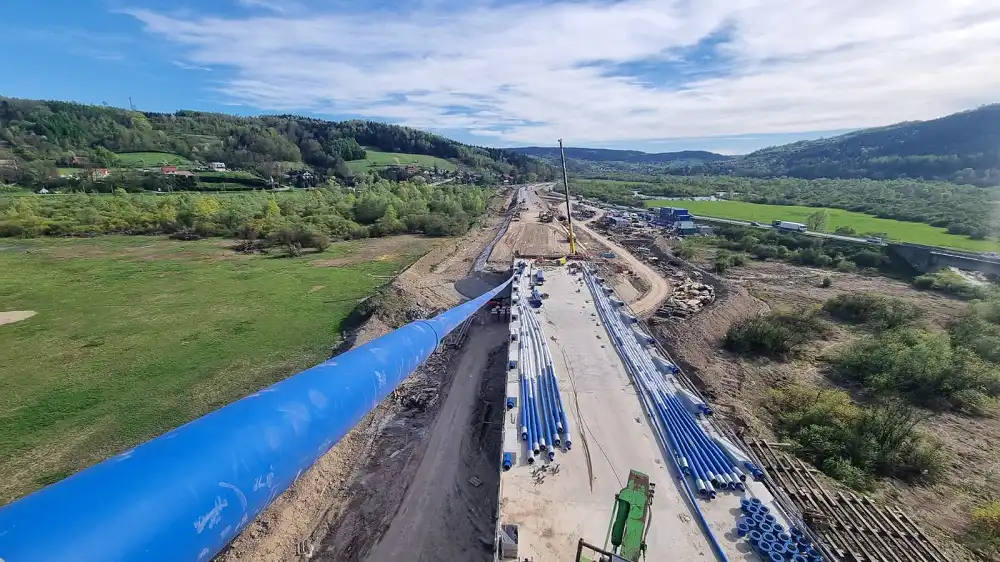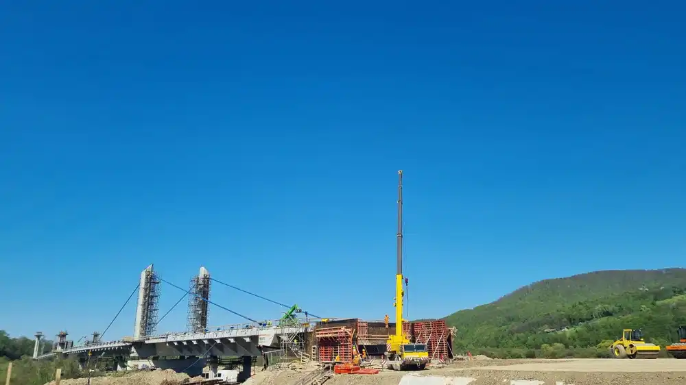 Budowa mostu na Dunajcu w Kurowie, koło Nowego Sącza, w ciągu DK75 postępuje. Prace wykonywane są od poniedziałku do piątku, w godzinach od 6.00 do 22.00.