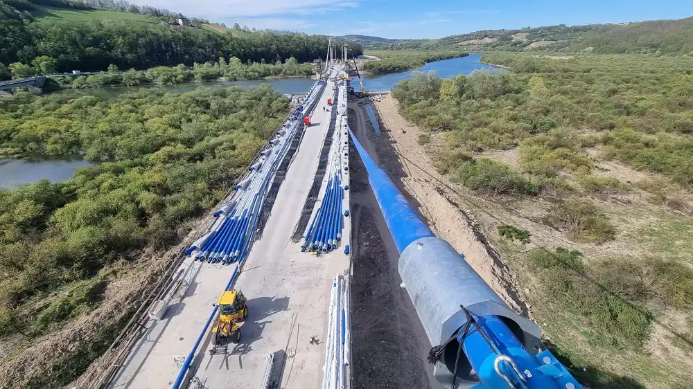 Przypomnijmy. Nowy obiekt ma 4 przęsła. Odległości pomiędzy nimi wynoszą 100,0 m - 200,0m - 200,0 m - 100,0 m. Stałe podpory mostu znajdują się poza nurtem rzeki Dunajec. Zastosowana technologia budowy mostu wymagała wykonania podpór tymczasowych zlokalizowanych w nurcie rzeki na czas realizacji obiektu, potem zostaną rozebrane. Konstrukcja jest posadowiona na 2 przyczółkach i 3 podporach.