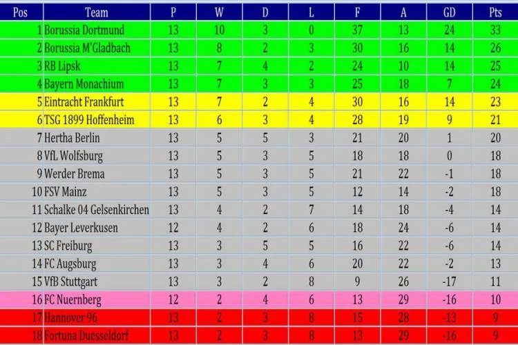 pokonał drugą w tabeli Borussie M'Gladbah 2 - 0. Zespół Roberta Lewandowskiego Bayern pokonał 2-1 na wyjeżdzie Werder Brema.