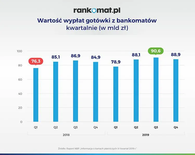 Wartość wypłacanej gotówki - miażdżąca przewaga bankomatów