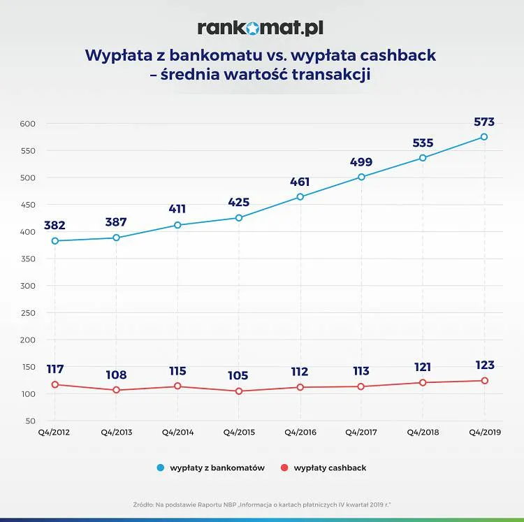 Średnia wypłata bankomatowa kilka razy wyższa od wypłaty cashback