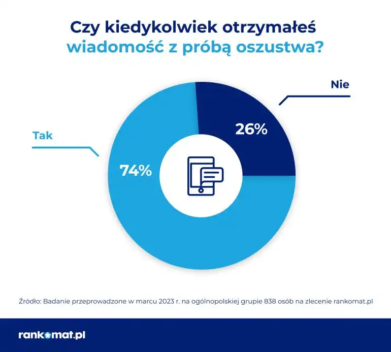 Z badania przeprowadzonego przez multiporównywarkę rankomat.pl wynika, że 74% Polaków co najmniej raz w życiu dostało wiadomość od cyberprzestępców. Aż 68% badanych nie padło ofiarą internetowych złodziei, ale 21% straciło pieniądze lub dane. Jednocześnie CERT Polska alarmuje, że lawinowo rośnie liczba oszustw komputerowych – w 2022 r. było ich ponad 35 tys., a rok wcześniej prawie 10 tys. mniej. Najwięcej – 22 575 razy – oszuści stosowali ataki phishingowe.