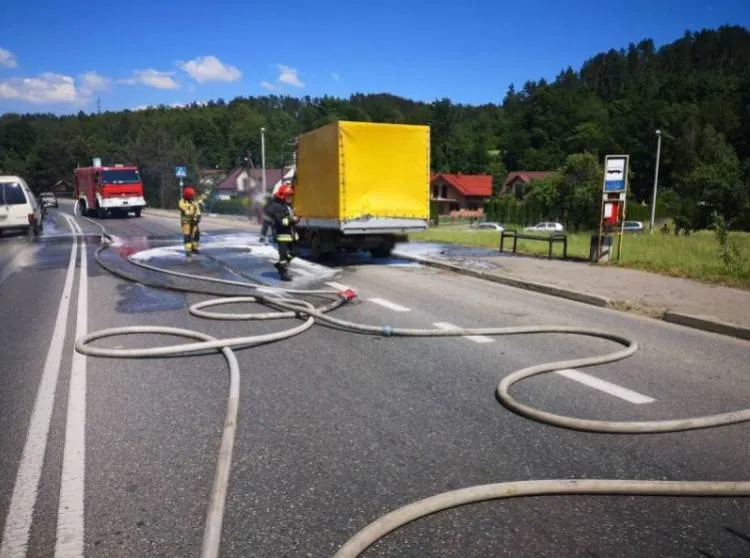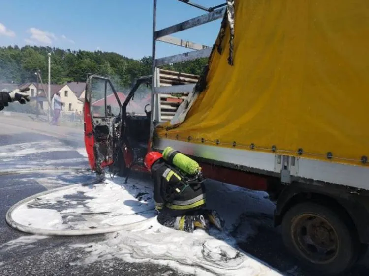 Okazało się, że płomieniami objęta była komora silnika, przedział kierowcy oraz częściowo skrzynia ładunkowa pojazdu, znajdującego się na zatoczce autobusowej.