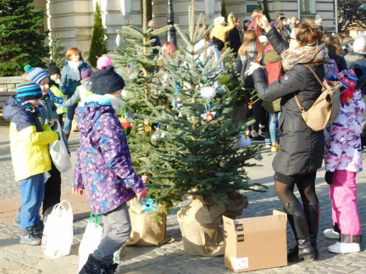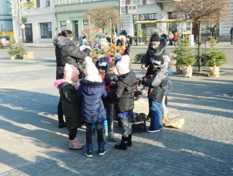 Dzieci ubierały choinki na rynku