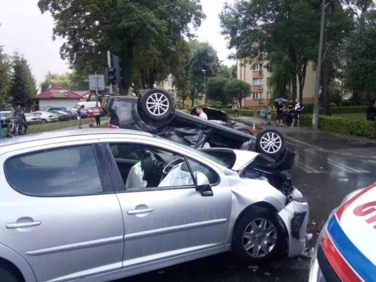 W wyniku kolizji dwa samochody znajdowały się na drodze, a jeden na dachu.