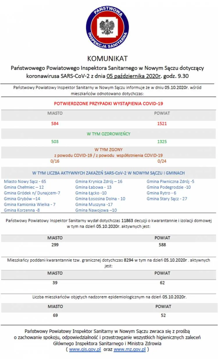 Koronawirus: 41 nowych zakażeń w subregionie sądeckim