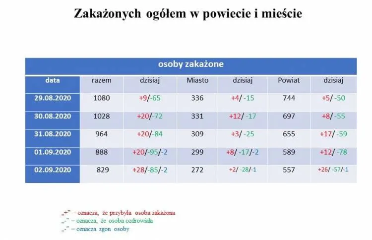 Wyniki ostatnich dni zawierające liczbę zakażonych ogółem w mieście i powiecie, przedstawione przez prezydenta również napawają optymizmem.