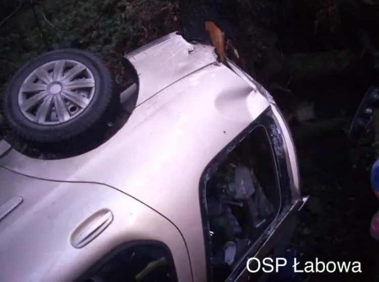 Kotów. Osobówka wylądowała na dnie wąwozu