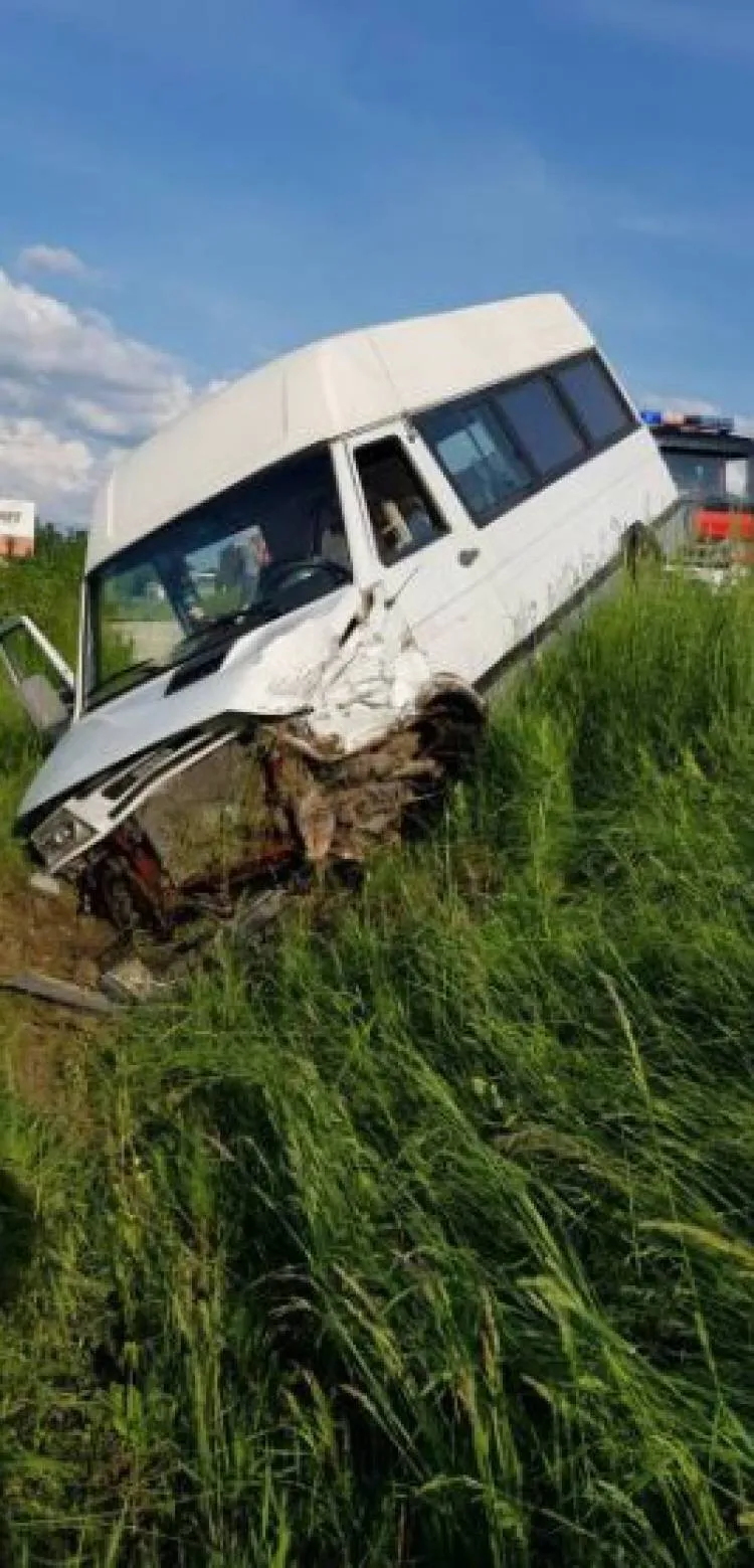 W wyniku kolizji jedna osobówka znajdował się na środku jezdni, druga z wyrwanym kołem i znacznymi uszkodzeniami karoserii w rowie, a bus w rowie z wyrwanym kołem przednim i znacznymi uszkodzeniami przodu pojazdu.