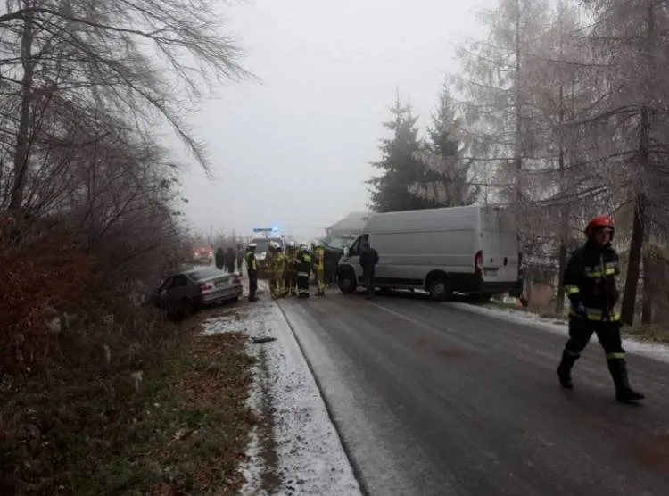 Po przybyciu na miejsce zdarzenia okazało się, że czołowo zderzyły się dwa samochody dostawcze. Kierowca trzeciego pojazdu osobowego widząc wypadek na drodze próbował go ominąć i w konsekwencji wylądował w pobliskim rowie.