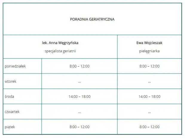 W poradni przyjmuje lek. Anna Węgrzyńska – specjalista chorób wewnętrznych, geriatrii oraz medycyny rodzinnej.