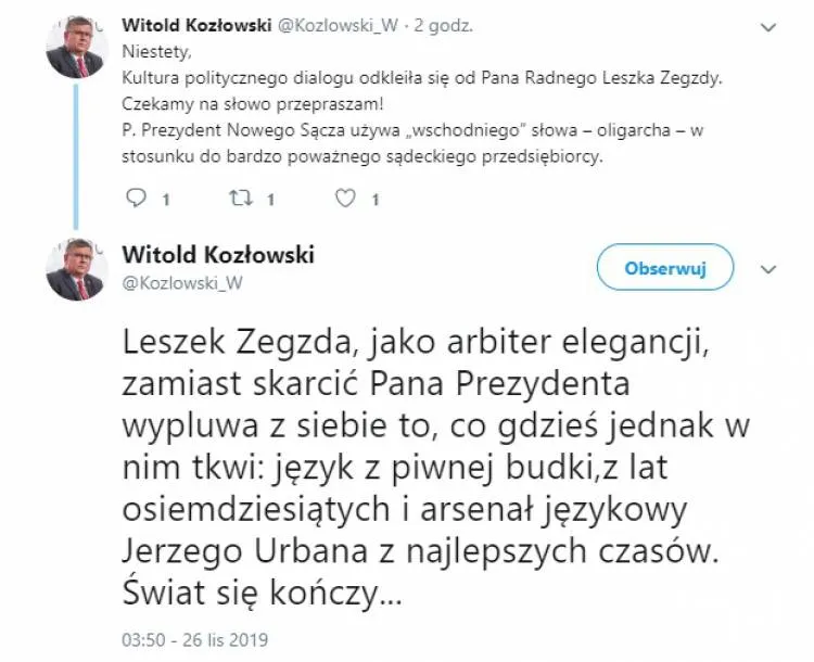 Jak widać wpis Pana Radnego Leszka Zegzdy wywołał niemałe poruszenie na scenie politycznej.