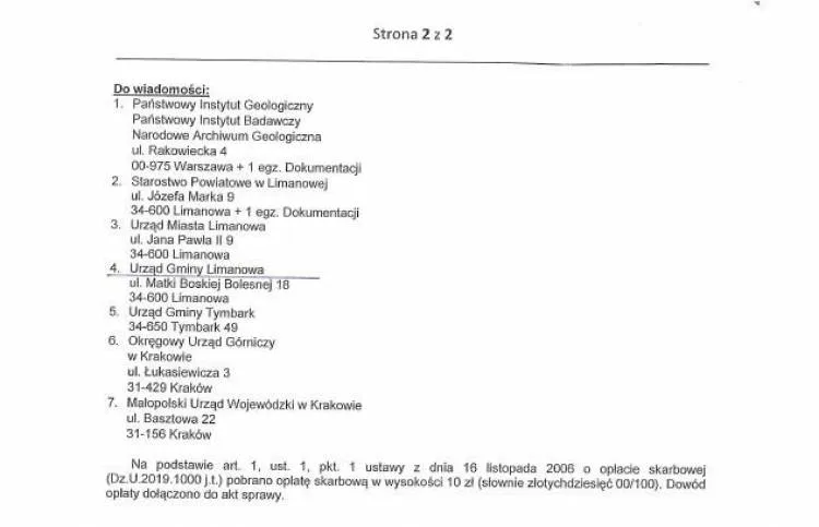 Marszałek Województwa Małopolskiego Witold Kozłowski po rozpatrzeniu wniosku Pana Pawła Skowrońskiego reprezentującego MGGP S.A. działającego z upoważnienia PKP Polskie Linie Kolejowe S.A. zatwierdził "Dokumentację geologiczno-inżynierską dla określenia warunków geologiczno-inżynierskich dla zadania pn.: "Opracowanie dokumentacji projektowej wraz z pełnieniem nadzoru autorskiego w ramach projektu pn. Budowa nowej linii kolejowej Podłęże - Szczyrzyc - Tymbark/Mszana Dolna oraz modernizacji istniejącej linii kolejowej nr 104 Chabówka - Nowy Sacz - Etap I: Wykonanie dokumentacji projektowej wraz z pełnieniem nadzoru autorskiego dla kontraktu pn. Modernizacja istniejącej linii kolejowej nr 104 Chabówka - Nowy Sącz - odcinek C tj. 14,0 km : Tymbark-Limanowa, w tym stacja Tymbark i Limanowa."