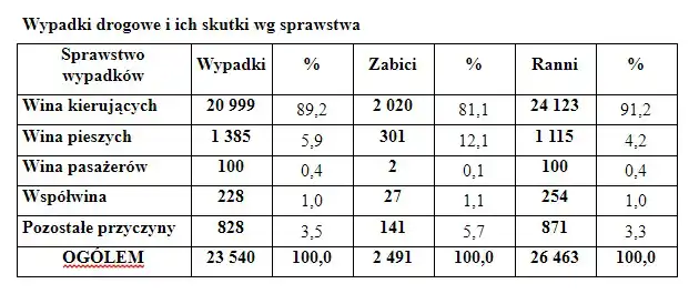 Przyczyną 41% wypadków, które spowodowali młodzi kierowcy, było niedostosowanie prędkości do warunków ruchu, a o ich ciężkości świadczy 60% zabitych w wypadkach przez nich spowodowanych.