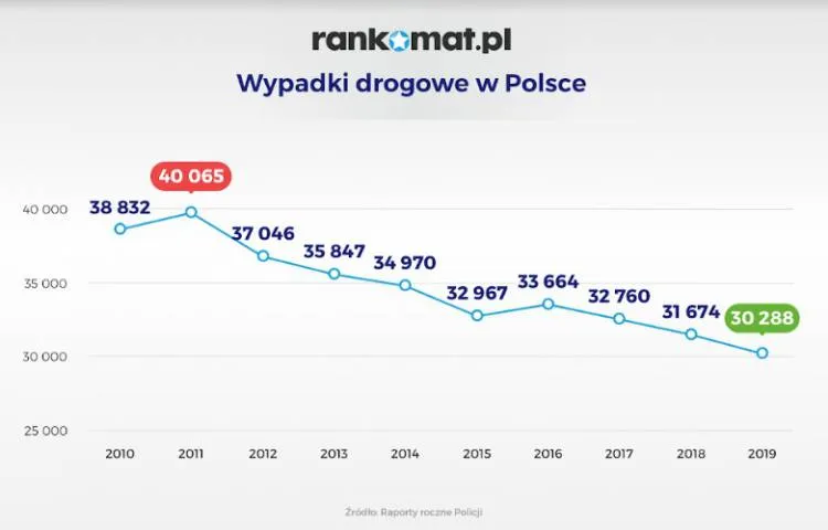 w porównaniu do 2018 r., to liczba wypadków z ich udziałem zmniejszyła się – wynika z raportu rocznego policji, któremu przyjrzeli się eksperci rankomat.pl.