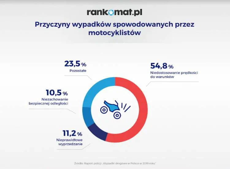 W 2019 r. główną przyczyną wypadków spowodowanych przez motocyklistów było niedostosowanie prędkości do warunków panujących na drodze (54,8%). Rzadziej doszło do nich w wyniku nieprawidłowego wyprzedzania (11,2%), a także niezachowania bezpiecznej odległości (10,5%).