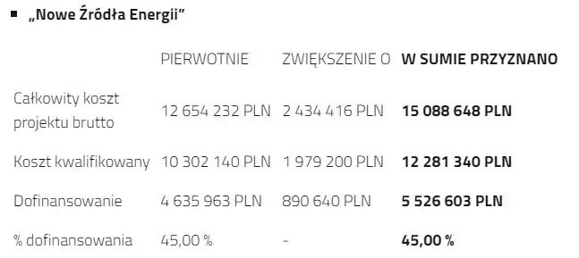 Spółce przyznano dofinansowanie ze środków unijnych na poziomie 45% wydatków kwalifikowanych projektu. Po zwiększeniu dofinansowania całkowita wartość projektu wzrosła o niemalże 20% i wynosi 15 088 648 PLN brutto. Jest to już trzeci projekt, w ciągu ostatnich 3,5 roku, który ma zwiększoną dotację. W tych 3 projektach łącznie zwiększyliśmy dotację o 3 869 649 PLN. To dodatkowe środki MPEC na realizację inwestycji.
