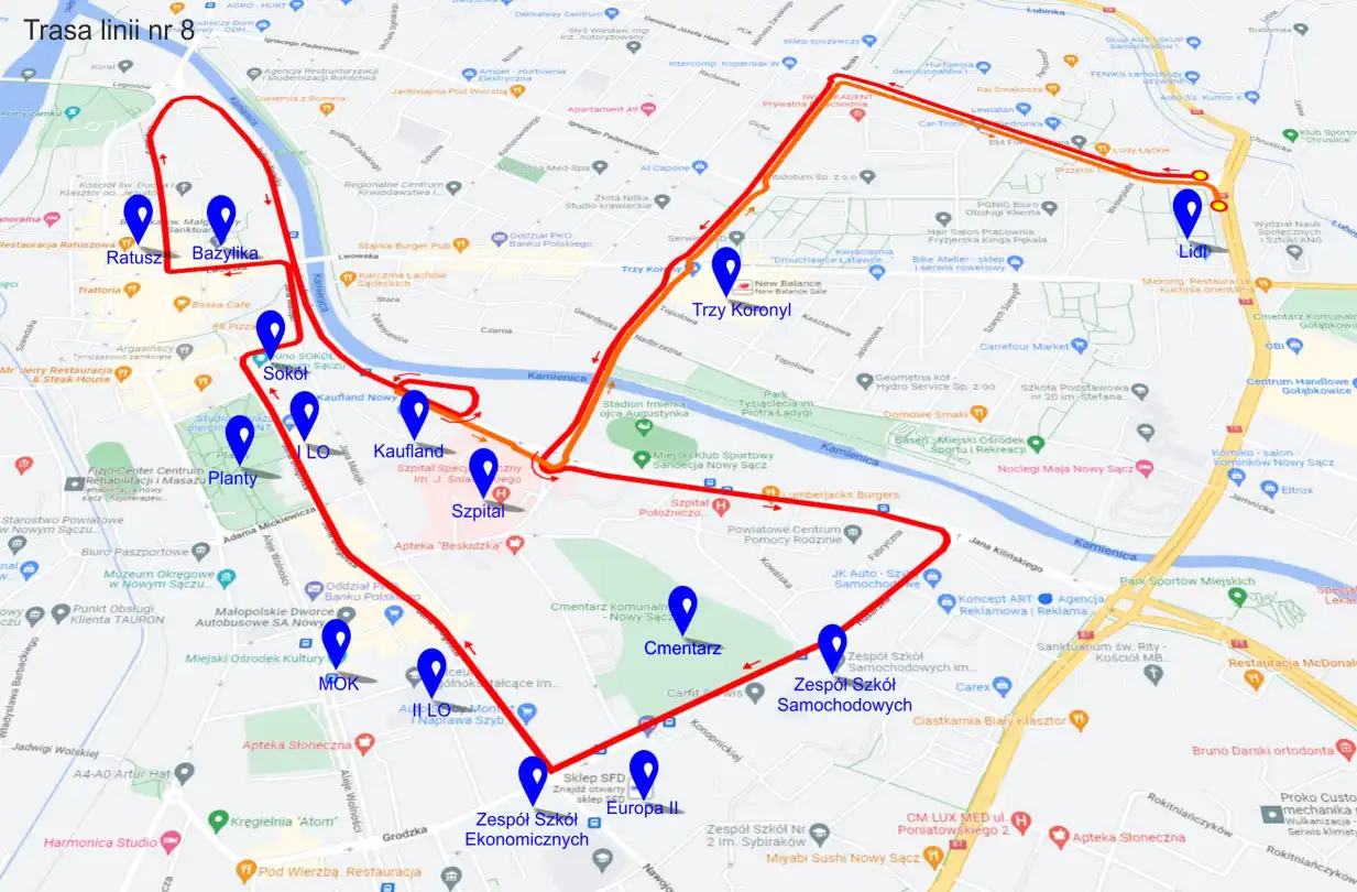 Rozkład jazdy linii nr 8 w formacie pdf tutaj.