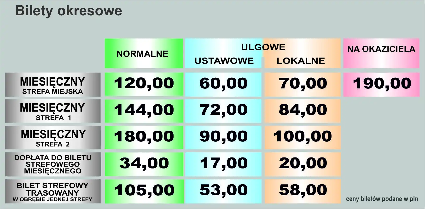 BILETY OKRESOWE, NABYTE PRZED WEJŚCIEM W ŻYCIE NOWEGO CENNIKA USŁUG KOMUNIKACYJNYCH ZACHOWUJĄ SWOJĄ WAŻNOŚĆ DO KOŃCA OKRESU, NA KTÓRY ZOSTAŁY WYKUPIONE.