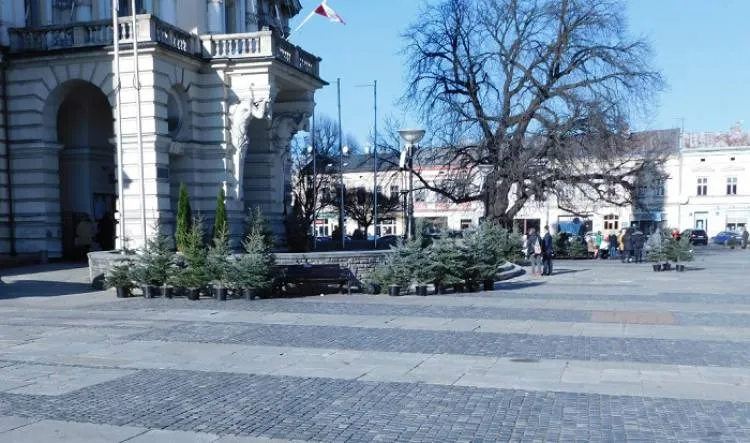 Z okazji Świąt Bożego Narodzenia na płycie nowosądeckiego rynku pojawiło się 100 żywych choinek.
