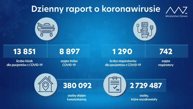 Od początku pandemii w Polsce odnotowano 3 076 518 zakażeń koronawirusem. Zmarło 77 547 osób. Wyzdrowiało 2 729 487.