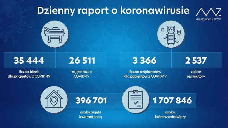 Od początku pandemii w Polsce odnotowano 2 120 671 zakażeń koronawirusem. Zmarło 50 340 osób. Wyzdrowiało 1 707 846.