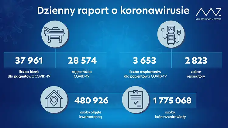 Od początku pandemii w Polsce odnotowano 2 221 725 zakażeń koronawirusem. Zmarło 51 753 osób. Wyzdrowiało 1 775 068.