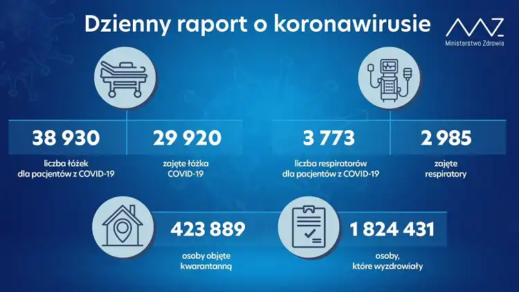 Od początku pandemii w Polsce odnotowano 2 267 964 zakażeń koronawirusem. Zmarło 51 932 osób. Wyzdrowiało 1 824 431.