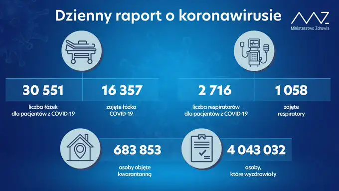 Od początku pandemii w Polsce odnotowano 4 925 270 zakażeń koronawirusem. Zmarło 105 434 osób. Wyzdrowiało 4 043 032.