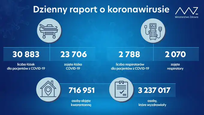 Od początku pandemii w Polsce odnotowano 3 785 036 zakażeń koronawirusem. Zmarło 87 928 osób. Wyzdrowiało 3 237 017.
