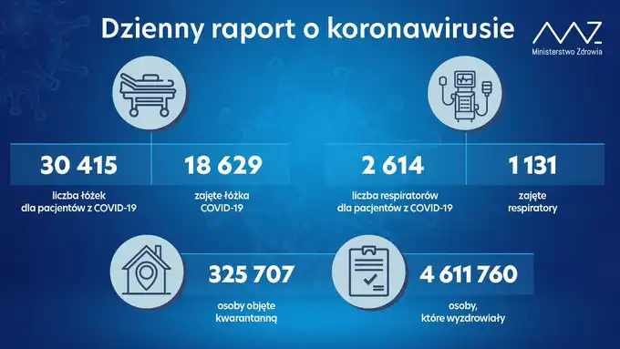Od początku pandemii w Polsce odnotowano 5 401 554 zakażeń koronawirusem. Zmarło 108 120 osób. Wyzdrowiało 4 611 760.