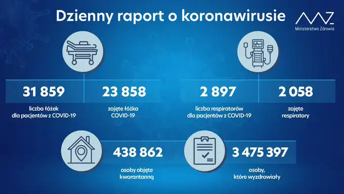 Od początku pandemii w Polsce odnotowano 3 982 257 zakażeń koronawirusem. Zmarło 92 052 osób. Wyzdrowiało 3 475 397.