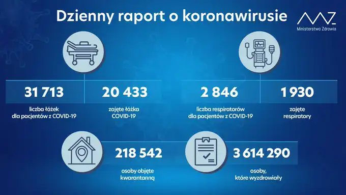 Od początku pandemii w Polsce odnotowano 4 094 608 zakażeń koronawirusem. Zmarło 96 415 osób. Wyzdrowiało 3 614 290.