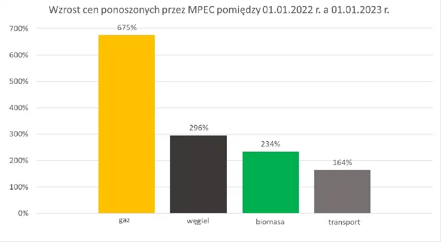 Na zmianę cen ciepła decydujący wpływ ma skokowy wzrost cen surowców. W okresie od stycznia 2022 do stycznia 2023 ceny paliwa węglowego wzrosły o 296%, ceny biomasy o 234%, gazu o 675% oraz transportu (samochodowy i kolejowy) o 164%.