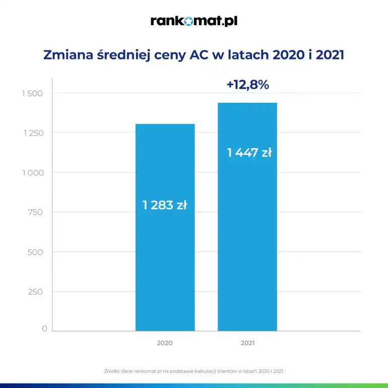 W 2020 roku za ubezpieczenie samochodu OC z AC polscy kierowcy płacili średnio 1283 złote – wynika z danych porównywarki. W 2021 roku do takiej polisy trzeba już było dopłacić 164 złote (+ 13%).