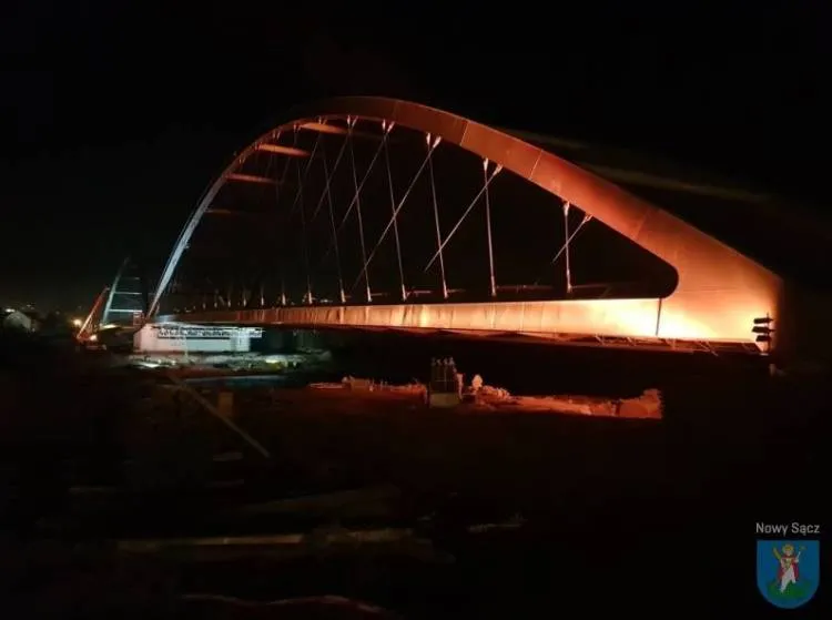 Po zmroku odbyły się pierwsze próby iluminacji powstającego właśnie mostu heleńskiego. Efektom przyglądał się Prezydent Miasta Nowego Sącza Ludomir Handzel oraz dyrektor Miejskiego Zarządu Dróg w Nowym Sączu Adam Konicki.