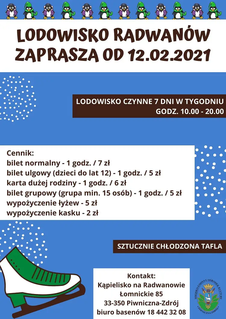 Piwniczna-Zdrój: Lodowisko Radwanów czynne od 12 lutego, 7 dni w tygodniu