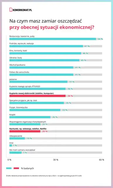 W innym badaniu z lipca ankietowani wypowiedzieli się na temat rosnącej inflacji, która wynosiła wówczas 15,5%. Ze względu na sytuację ekonomiczną aż 36% z nich planuje ograniczyć wydatki związane z zakupem elektroniki (w tym nowego telefonu), a 20% planuje ograniczyć wydatki telefoniczne i różnego rodzaju subskrypcje.