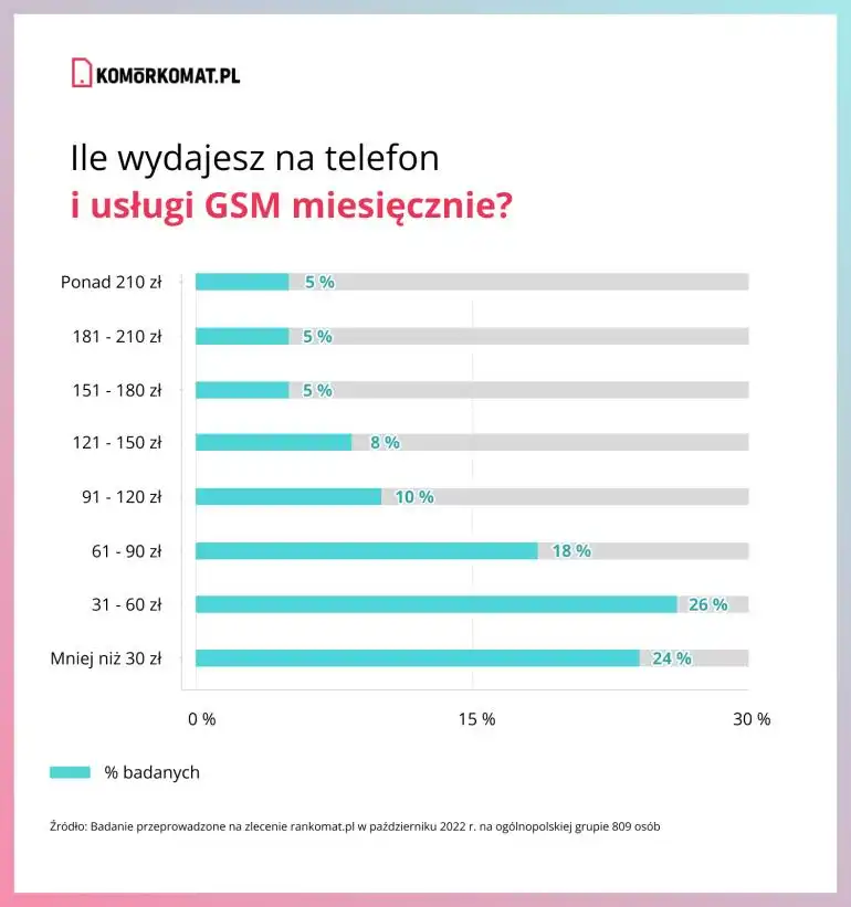 Z raportu UKE ze stycznia 2022 roku wynika, że średnie rachunki miesięczne za telefon komórkowy wynoszą 54 zł. Niemal co czwarty ankietowany (24,5%) płacił mniej niż 30 zł miesięcznie. Taki sam odsetek wskazywał na rachunki wynoszące ponad 60 zł. Jednocześnie 70% ankietowanych było związanych z umową na abonament - prepaid (oferta na kartę) i mix stanowiły jedynie 25,9 i 4,2% badanych.