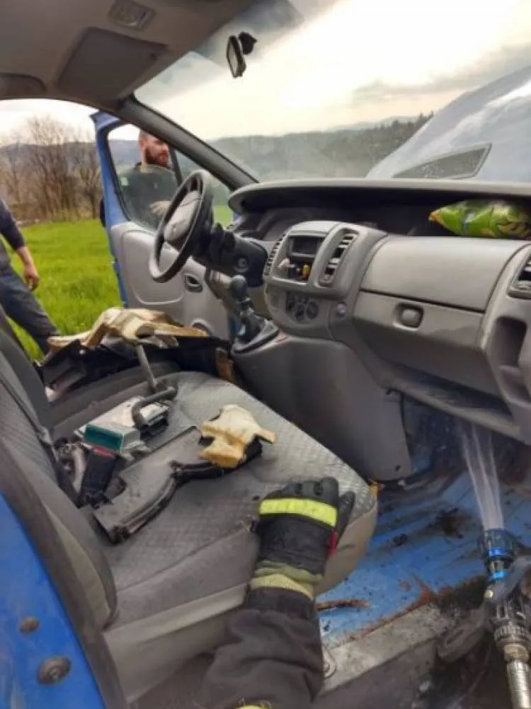 Dzisiaj (24.04.2019r.) przed godziną 10, na drodze gminnej w Januszowej doszło do zapalenia się samochodu dostawczego marki Renault Trafic.