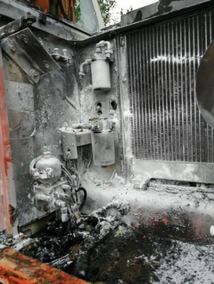 Wczoraj (7.08.2019) w Jazowsku, podczas prac ziemnych, doszło do pożaru w komorze silnika koparki.