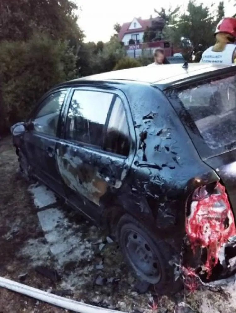 Częściowo palił się również samochód osobowy zaparkowany w odległości kilku metrów od budynku warsztatu oraz krzewy ozdobne.