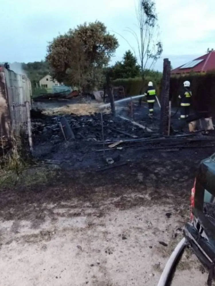 Strażacy ugasili ogień oraz przystąpili do prac rozbiórkowych kontrukcji budynku warsztatu.