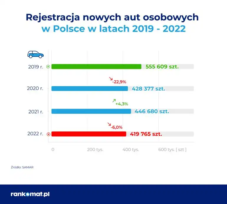 Eksperci multiporównywarki rankomat.pl przeanalizowali dane dotyczące sprzedaży samochodów nowych oraz używanych za 2022 rok i sprawdzili, które z nich mogły mieć największy wpływ na zmniejszenie podaży oraz podniesienie średniego wieku pojazdu.