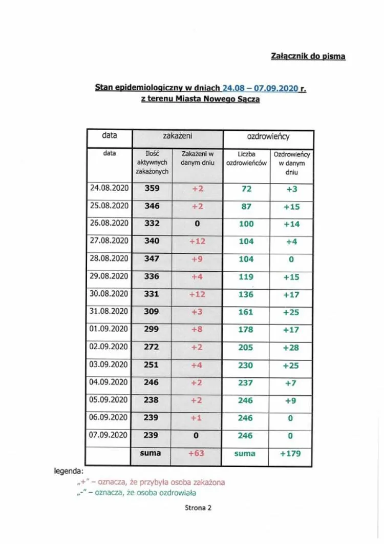 Przyrosty zakażonych są symboliczne, a Nowy Sącz nadal pozostaje w czerwonej strefie. Prezydent wystosował pismo do Ministra Zdrowia