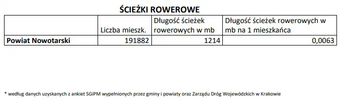 POWIAT NOWOTARSKI za wybudowanie 9.985 mb chodników (0,052 mb chodników na 1 mieszkańca powiatu)