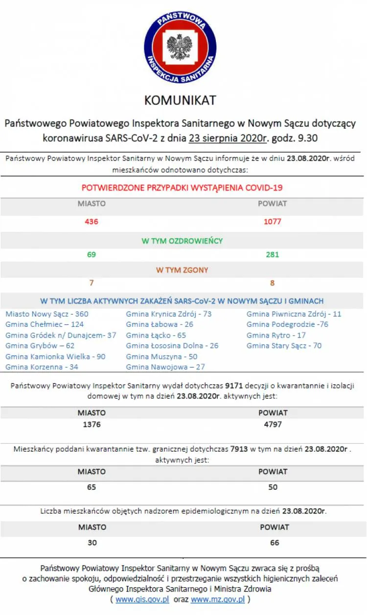 Sądecczyzna. 40 kolejnych zachorowań w mieście, a w powiecie żadnego