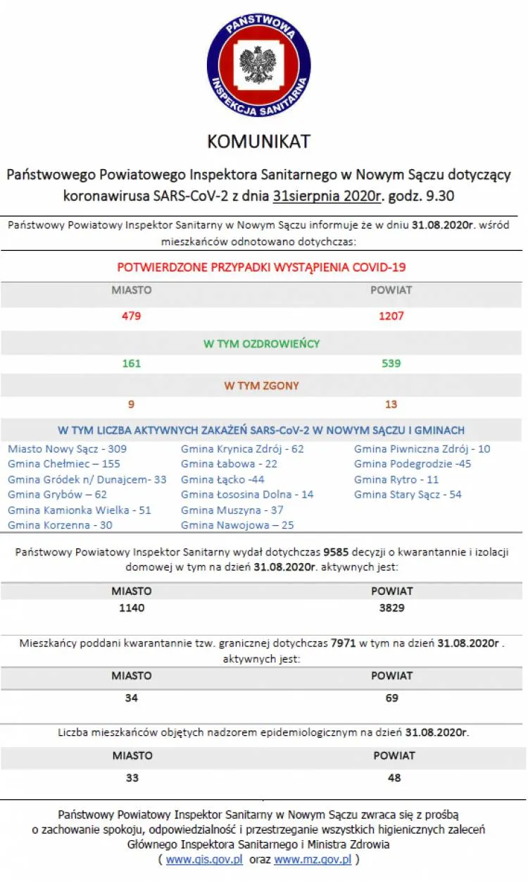 Z kolei wśród ozdrowieńców jest 51 kobiet i 54 mężczyzn, w wieku od 9 miesięcy do 87 lat, z powiatu nowosądeckiego (60 osób), Nowego Sącza (24 osoby), powiatu nowotarskiego (6 osób), Krakowa i powiatu olkuskiego (po 4 osoby), wielickiego (3 osoby) oraz krakowskiego i oświęcimskiego (po 2 osoby), którzy w większości przebywali w izolacji. W sumie w Małopolsce mamy 3479 ozdrowieńców.